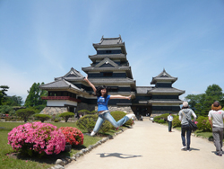 松本城となる以前は深志城(ふかしじょう)と呼ばれていて、その城の風格から別名「烏城」とも呼ばれていました!ここでも、女子がジャンプ!!((´∀`))ケラケラ